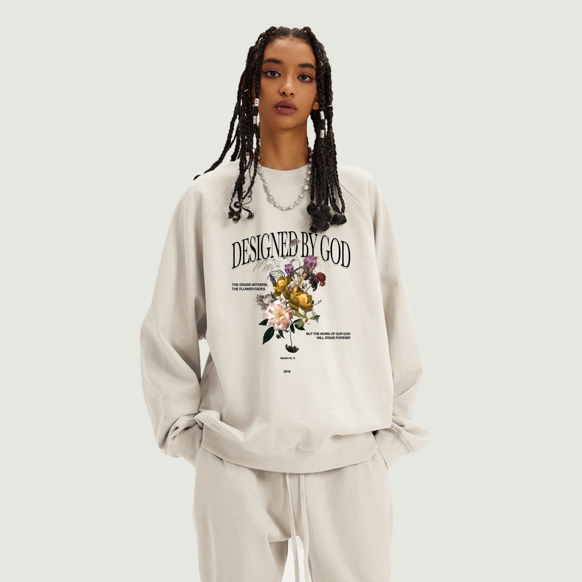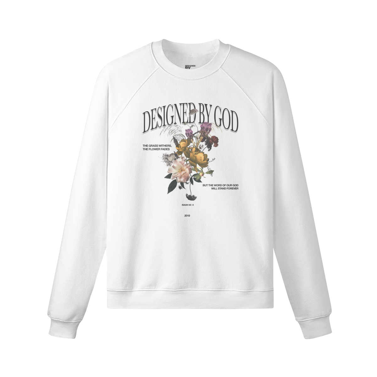 Superb quality meets minimalist simplicity with this heavyweight crewneck sweatshirt. Fleece-lined and made from 100% soft combed cotton for the ultimate luxurious feel, the FLOWERS CREWNECK comes from our FLOWERS SERIES (available as the teeshirt and hoodie) and features the already iconic ISAIAH 40:8 graphic.